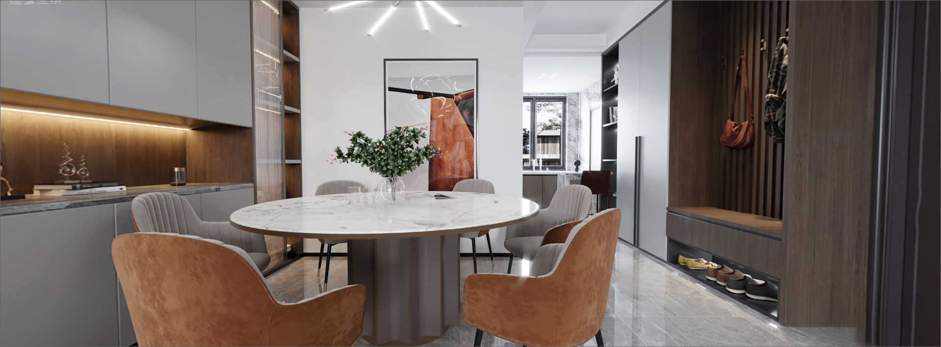 居所不僅是安身之所,也是靈魂的舒展之地?,F代簡約是一種“大宅至簡”生活的態度,采用最直白的裝飾語將空間布局和使用功能完美結合,重視材料的質感及功能,推崇科學合理的構造工藝,結合業主的愛好及生活習慣,為空間賦予更多的精神內涵。當喧囂與繁華褪去,給予懂生活的人一處舒適寧靜的棲居之所。